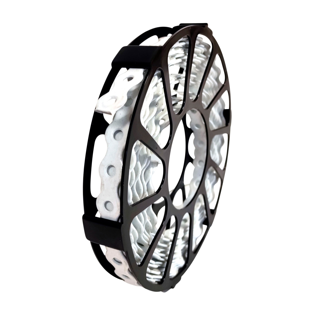 Patentbånd med farvet plastbelægning til ophæng, hvor der er behov for en sikker og langtidsholdbar fastgørelsesløsning.