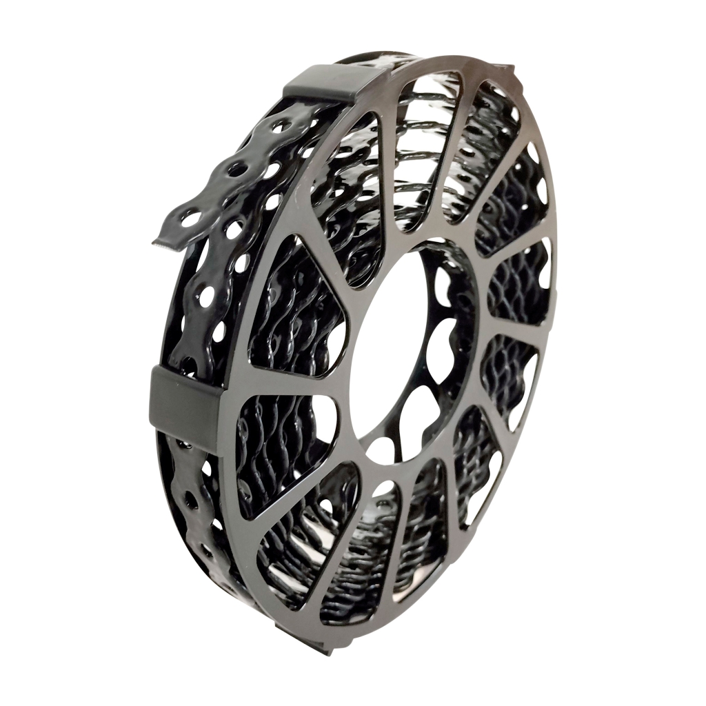 Patentbånd med farvet plastbelægning til ophæng, hvor der er behov for en sikker og langtidsholdbar fastgørelsesløsning.
