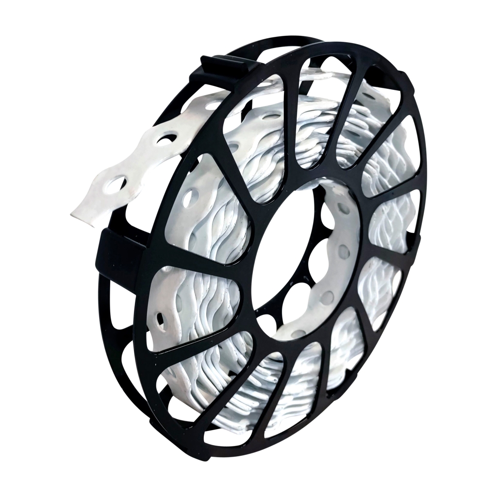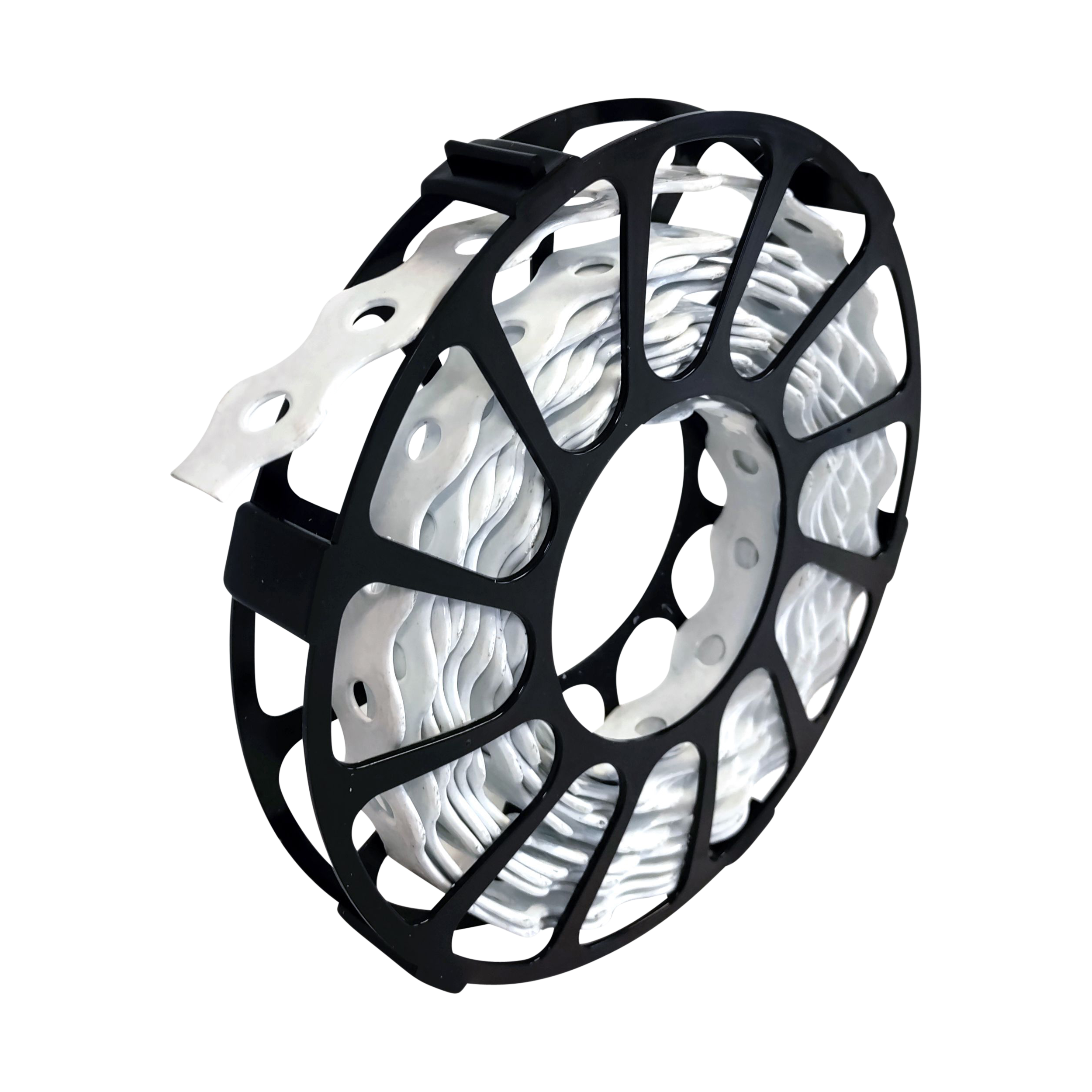 Patentbånd med farvet plastbelægning til ophæng, hvor der er behov for en sikker og langtidsholdbar fastgørelsesløsning.