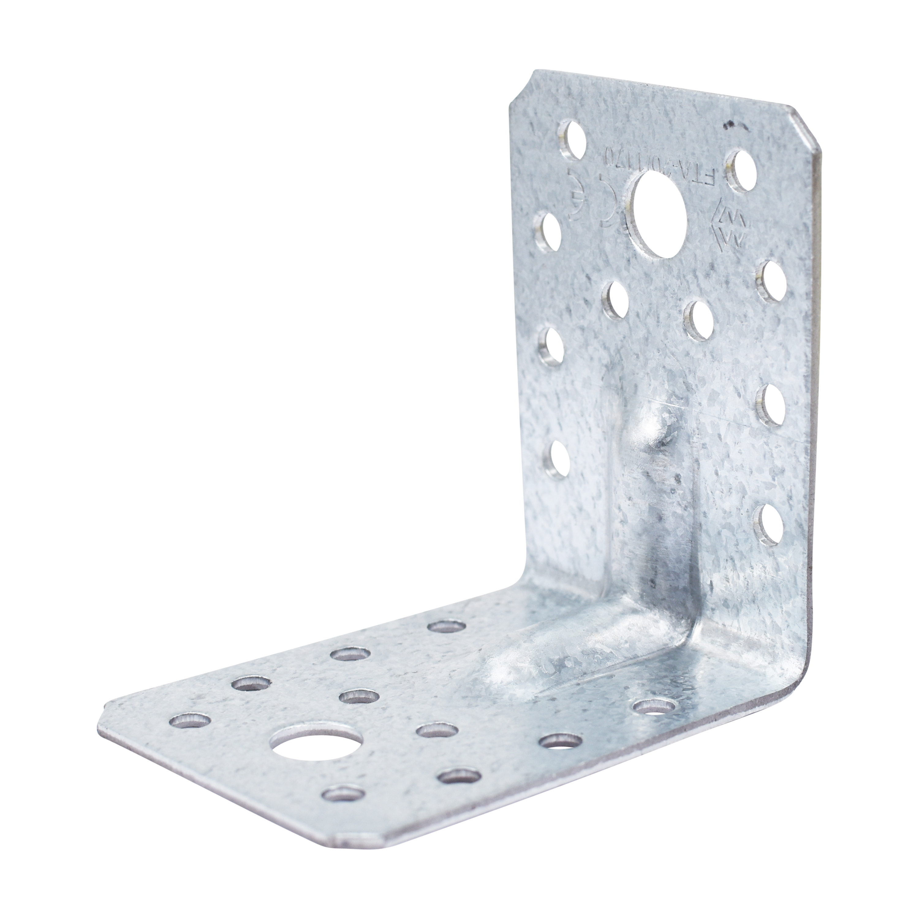 Vinkelbeslag i pregalvaniseret stål til træ-træ- og træ-beton-samlinger. Med ribbeforstærkning.