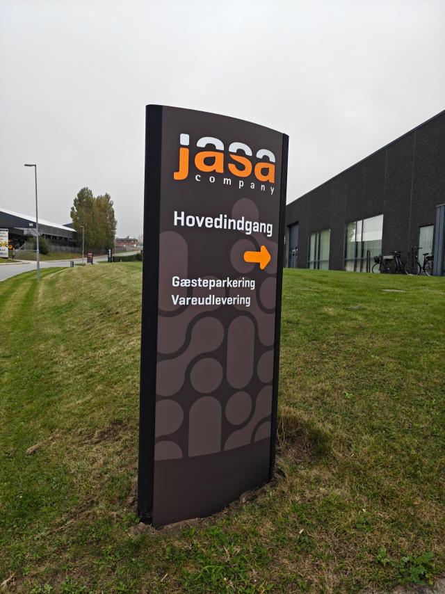 Disse bliver brugt som den røde tråd gennem huset, lige fra skiltning til foliering af døre. De er nu med til at guide gæster og leverandører gennem vores univers, fra kontorer og lager til lastbiler på vejene. Resultatet er en visuel identitet i bevægelse: de samme former, der repræsenterer vores produkter, binder hele huset sammen og gør Jasa genkendelig, uanset hvor du møder os.