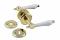 Husmandsgreb med 6 mm oppresset roset. I messing med trægreb i hvid. Inkl. nøgleskilte samt skruer og bøsninger til montering.