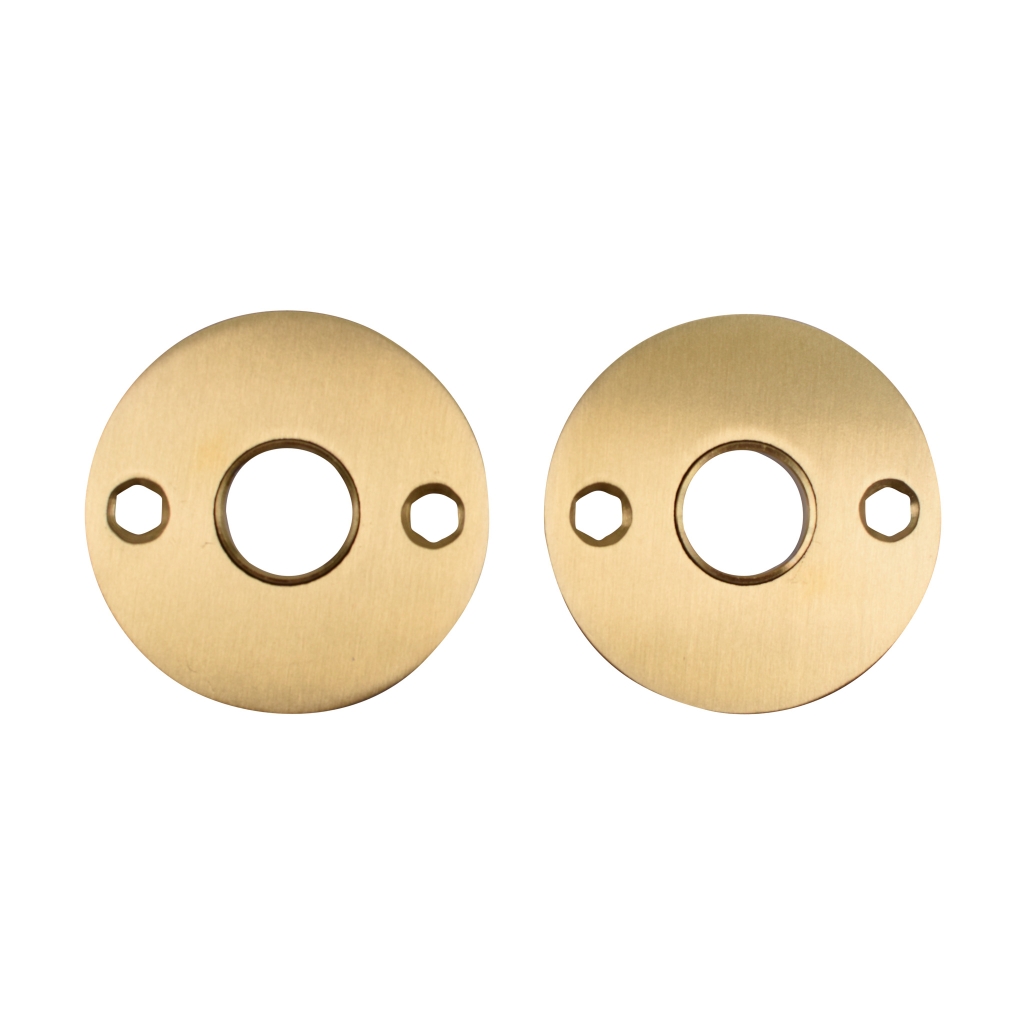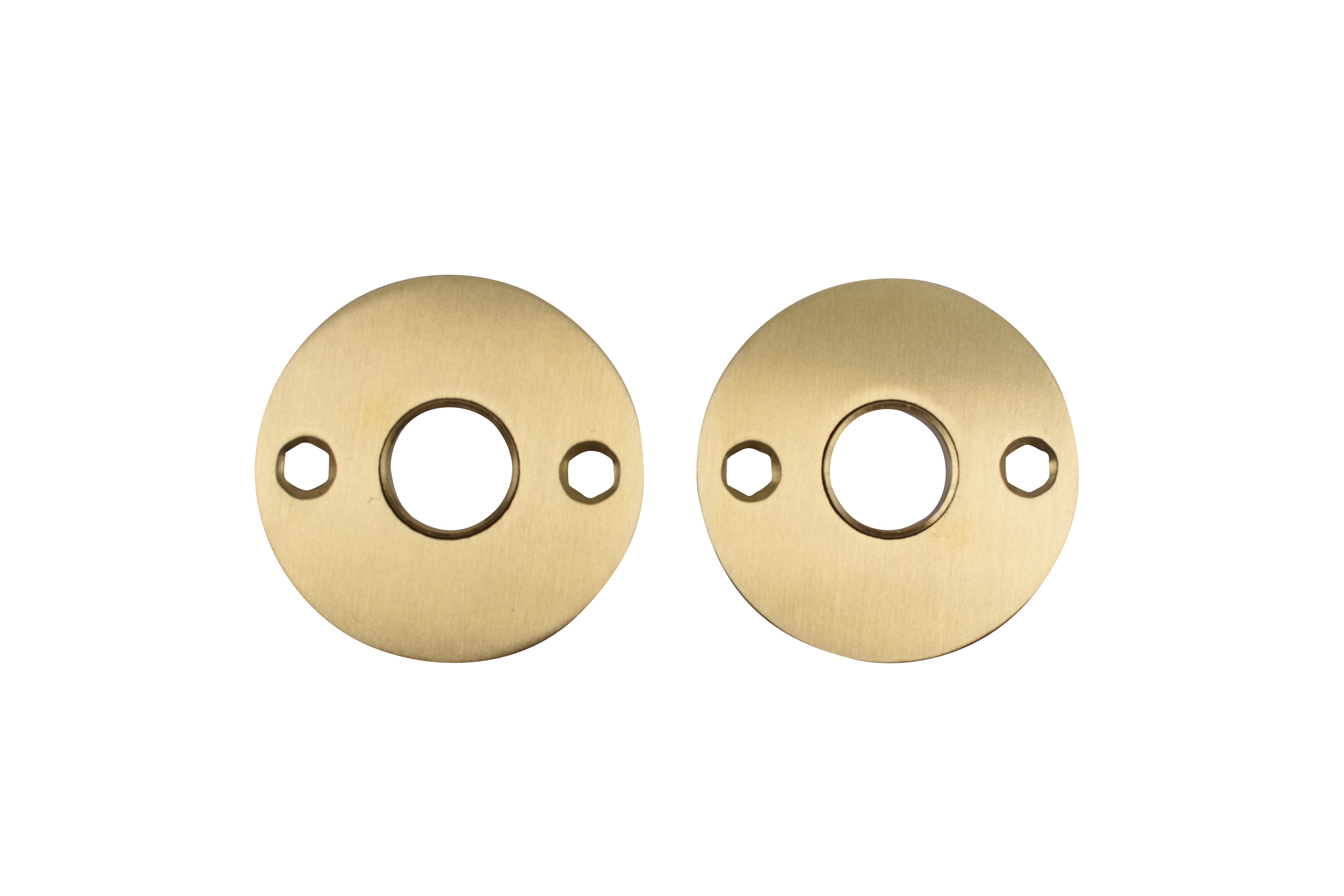 Massiv dørgrebsroset (Ø52 mm). Dørgrebsrosetten er både til dekoration omkring dørgrebet, men hjælper samtidigt med at beskytte mod slid på døren, når dørgrebet bruges. Inkl. skruer og bøsninger til montering.