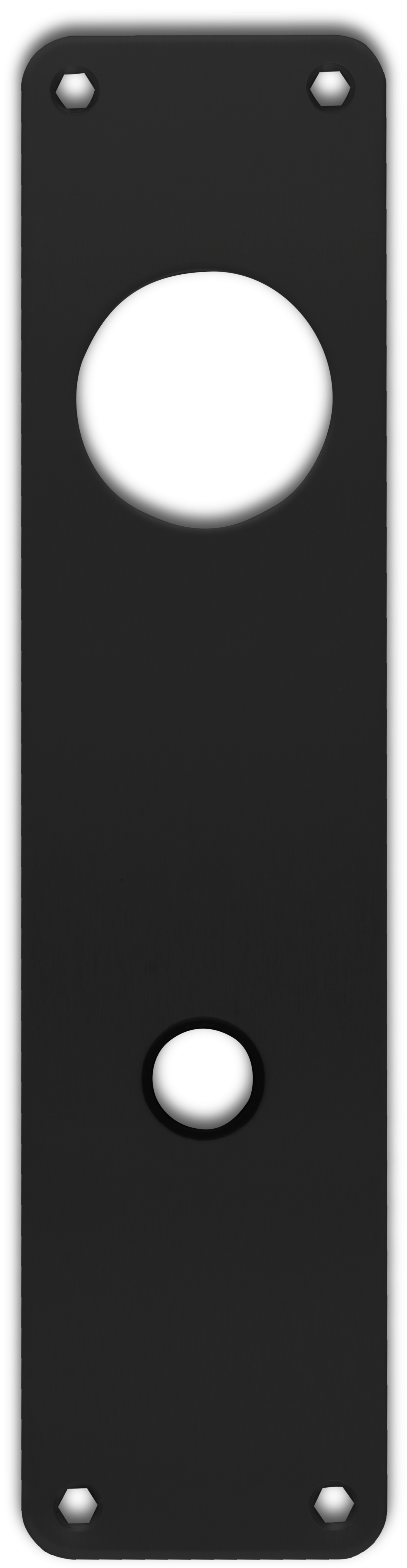Stort massivt langskilt med rundt hul (Ø40 mm) og bøsning i plast. Måler 250x60x2 mm. Inkl. 4 stk. træskruer.