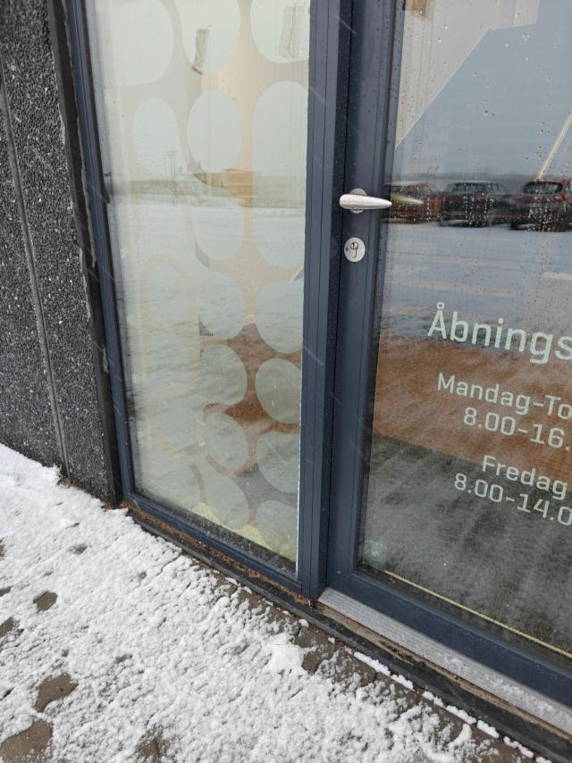 - Frost kan få kondens eller regnvand til at fryse fast i greb og låse, hvilket kan gøre det svært at åbne døren.