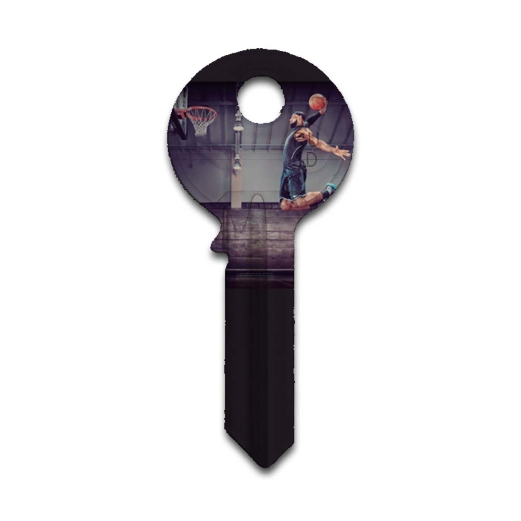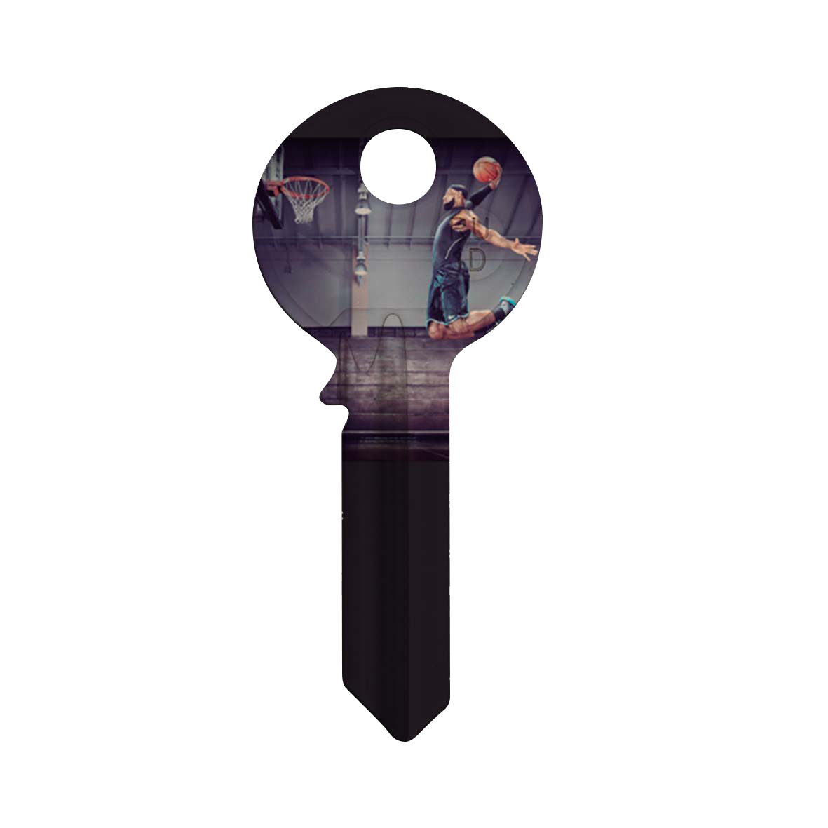 5-stift nøgle med rundt hoved og Basketball-motiv. Nøgler med motiv kan hjælpe med at kende forskel på de mange nøgler, der ofte befinder sig i et nøglebundt.
