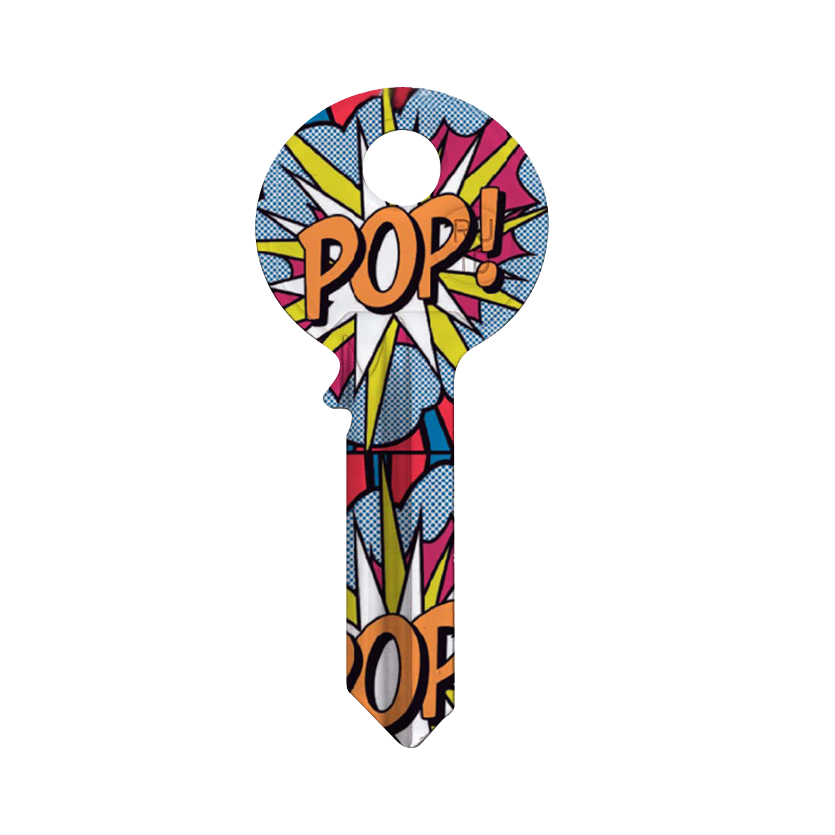 5-stift nøgle med rundt hoved og Cartoon-motiv. Nøgler med motiv kan hjælpe med at kende forskel på de mange nøgler, der ofte befinder sig i et nøglebundt.