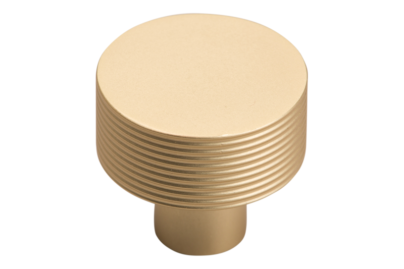 Moderne møbelknop (Ø25/Ø11 mm) med riflet overflade. Passer på de fleste skuffer og skabe, hvor der ønskes et industrielt og eksklusivt udseende. Kan også sættes op som knage på væggen. Inkl. skrue.